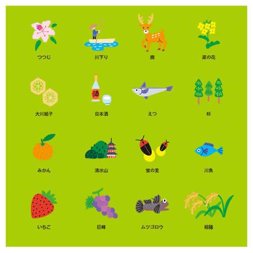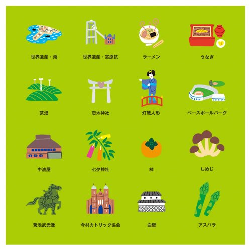 あるパンフで作られた筑後エリアマップに挿入した名所、名産などのイラストですね。